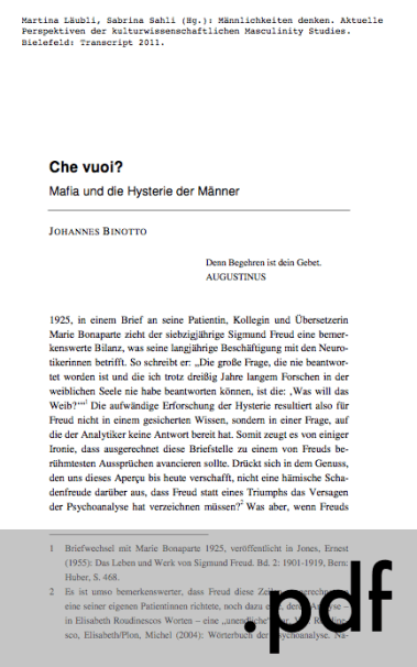 in: Martina Läubli, Sabrina Sahli (Hg.): Männlichkeiten denken. Aktuelle Perspektiven der kulturwissenschaftlichen Masculinity Studies. Bielefeld: Transcript 2011. S. 285-302.