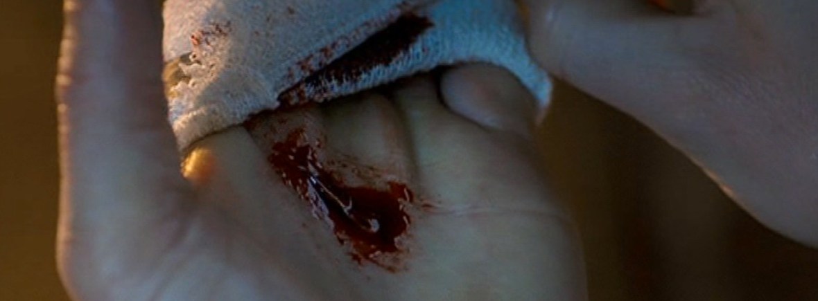 In ihrem Film «Manual» schneiden Müller und Girardet die Bilder einer Hand auf nackter Hand zusammen mit den Bildern, wie jemand nach weichem, silbernen Kunststoff greift. Doch die Schnitte geschehen so schnell, dass sich in den trägen Augen des Betrachters, Fleisch und Plastik verbinden, ineinander fliessen, bis es einem schlecht wird. Und so verschneiden die Filmemacher auch in «Cut» unentwegt die Körper der Figuren mit den Körpern der Dinge: Das Gerinsel unter der Haut trifft zusammen mit dem Bild von Infusionsschläuchen im Krankenzimmer; Wasserhähne tropfen, wo Wunden tropfen müssten; Brandwasser ergiest sich über Blüten. Einmal wird ein Kissen aufgeschnitten und man wundert sich, dass keine Eingeweide hervortreten. Doch zuzusehen, wie die graue Füllung herausquillt ist mindestens so schlimm. Selbst der Teppich scheint zu bluten und wenn eine Frauenhand ihre Strümpfe zerreisst, ist es, als würde sie sich mit ihren Nägeln die Haut abziehen. So weit hat uns dieser Film gebracht: über alle Grenzen unserer Körperwahrnehmung hinaus. Wir sehen Leiber überall – in allen Dingen.
