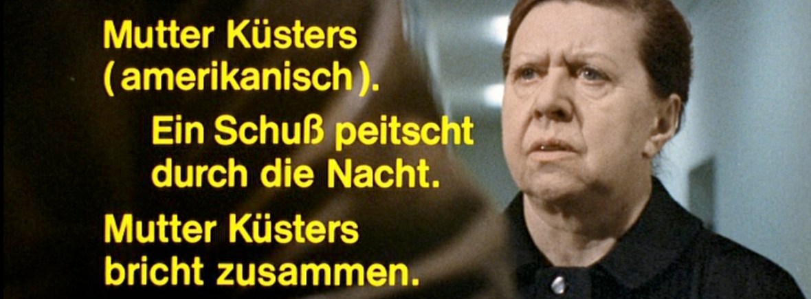… Wir sehen somit in dem verlogen-wahren Happy End von „Mutter Küsters’ Fahrt zum Himmel“ genau jene vertrackte Verschränkung von Ernüchterung und gleichwohl bewahrter Hoffnung am Werk, welche Chris Tedjasukmana bei Fassbinder interessiert, wenn er dessen Festhalten an der Utopie „auch und gerade im Moment ihrer Erschöpfung“ untersucht: In der Betrachtung von Fassbinders Filmen wird der affizierte Betrachter, so Tedjasukmana, befähigt „den Faden der gescheiterten Vergangenheit in der Gegenwart einerseits aufzugreifen, andererseits ihn der Vergangenheit zu entreissen und anders weiterzuspinnen.“ Entsprechend führt das Happy End von „Mutter Küsters’ Fahrt zum Himmel“ gerade in seiner Unglaubwürdigkeit und schieren Kontingenz vor, dass das Ende letztlich noch gar nicht feststeht. Der Schluss ist nie eindeutig, sondern mindestens zwiespältig: Nicht nur, dass Fassbinders Film über zwei Alternativenden verfügt, auch diese sind noch in sich selbst mit doppeltem Boden versehen. Diese immer weiter sich fortsetzende interne Spaltung ähnelt jener Denkfigur der Puppe in Puppe, in welcher Wilfried Wiegand das Hoffnungsvolle bei Fassbinder sieht: „Die Puppe-in-der-Puppe-Dramaturgie mit ihrer gleichsam in die Unendlichkeit gerichteten Perspektive ist also kein Ausdruck der Hoffnungslosigkeit, sondern gerade der Sehnsucht, der Hoffnung: sie ist die Form, die dem Denken der Utopie entspricht.“ In Fassbinders gespaltenen Schlüssen bleiben die Ausgänge der Geschichte offen…
